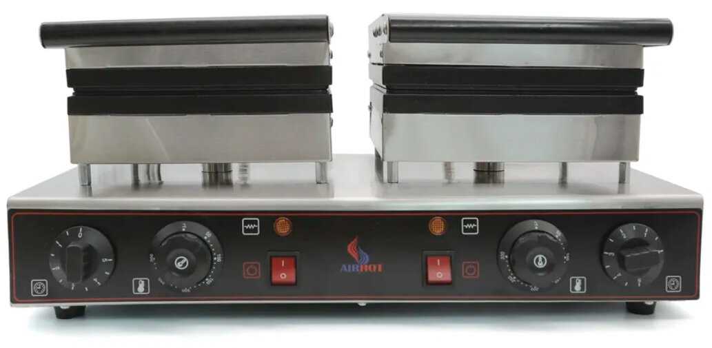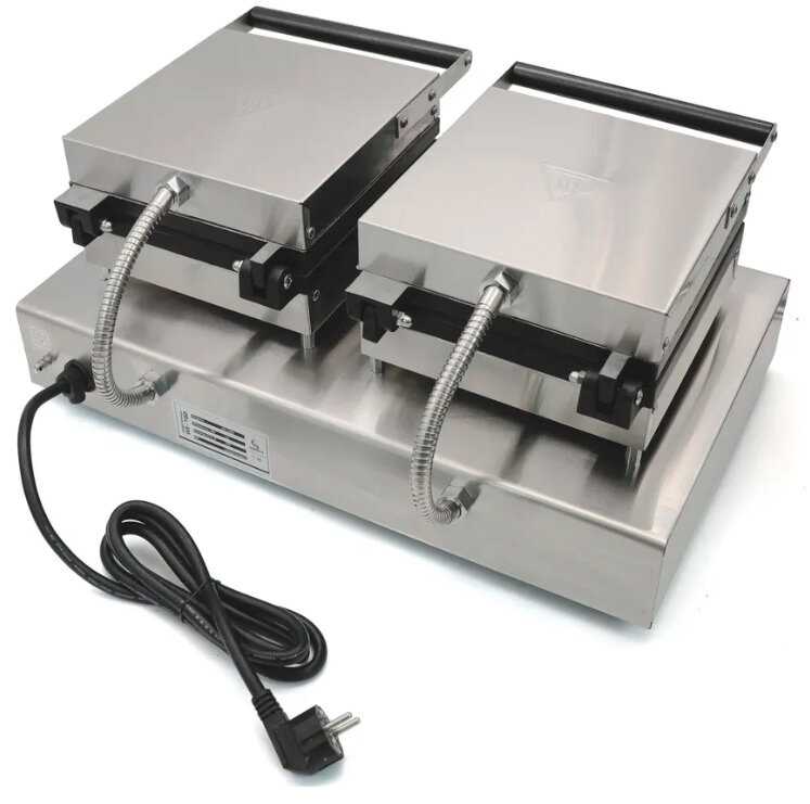 | Дополнительная информация : | рабочая поверхность 2х 220*220мм, для 4 бельгийских вафель на каждой поверхности поверхность чугун с антипригарным покрытием корпус нерж сталь |