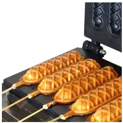 | Дополнительная информация : | для вафель на палочке (корн-догов) 5 шт . размер одной вафли 140×40×15 мм, размер рабочей поверхности 295х185 мм, антипригарное покрытие, таймер, терморегулятор, время приготовления вафель 2-3 мин |