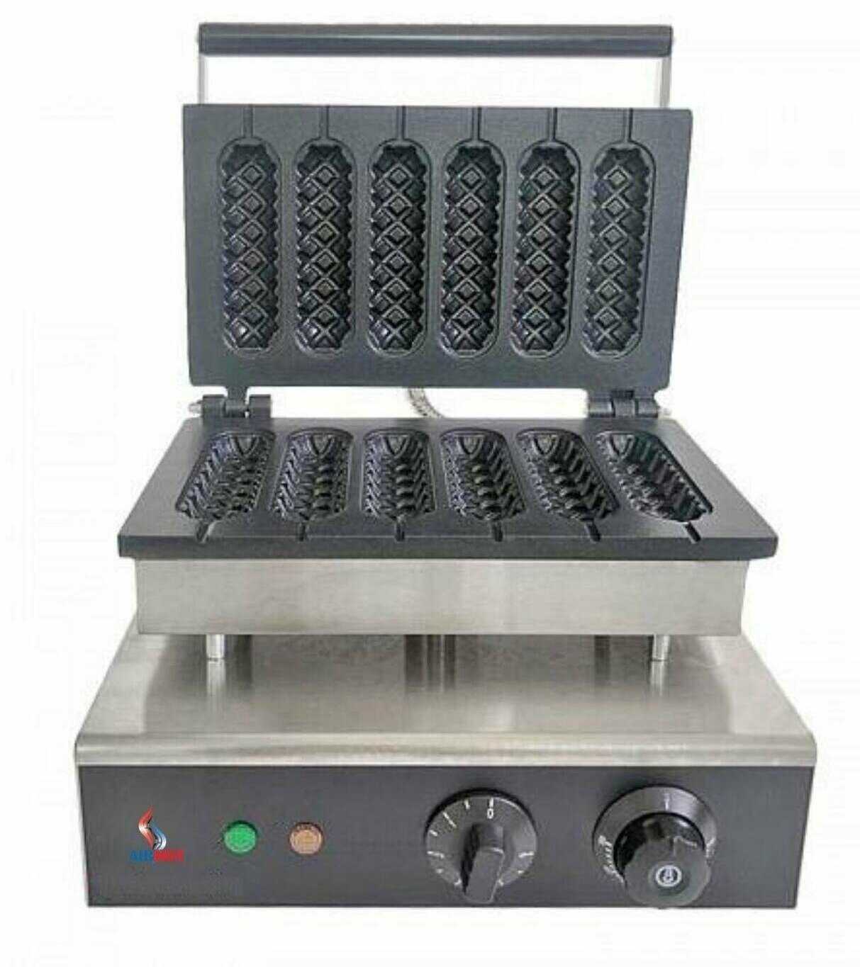 | Дополнительная информация : | для вафель на палочке (корн-догов) 5 шт . размер одной вафли 140×40×15 мм, размер рабочей поверхности 295х185 мм, антипригарное покрытие, таймер, терморегулятор, время приготовления вафель 2-3 мин |