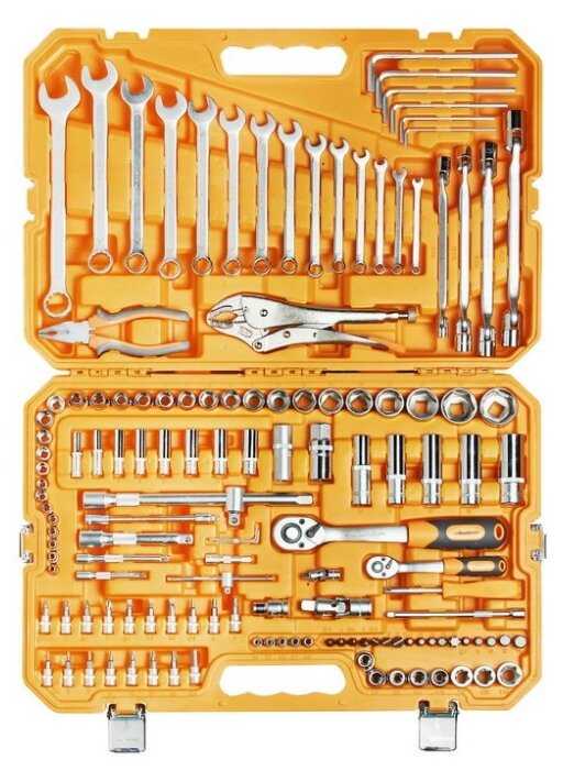 | Инструменты в комплекте : | вороток для головок, ключи гаечные, ключи имбусовые (шестигранные), отвёртки, пассатижи, плоскогубцы, трещотка |