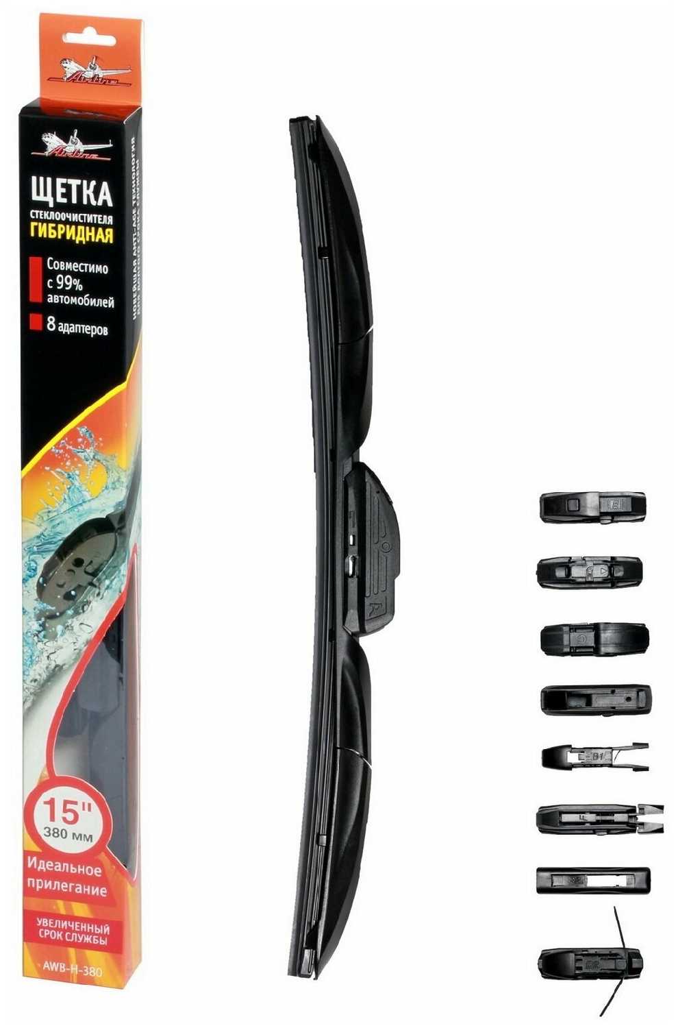 Отзывы о Щетка стеклоочистителя гибридная AIRLINE AWB-H-380 (8 адаптеров)