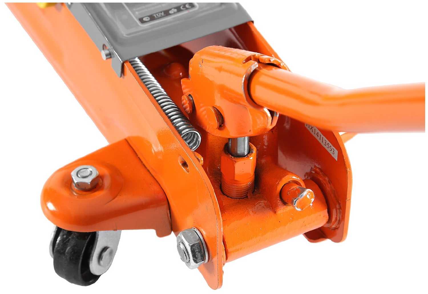 - + Скорость и удобство работы: Подкатить домкрат под автомобиль и поднять его занимает буквально 30-60 секунд. Не нужно тратить силы на механическую ручную подкачку, как с ромбовым ("бутылочным") домкратом.