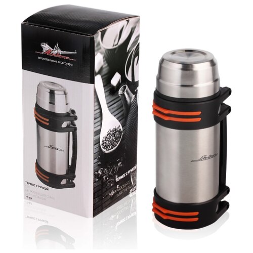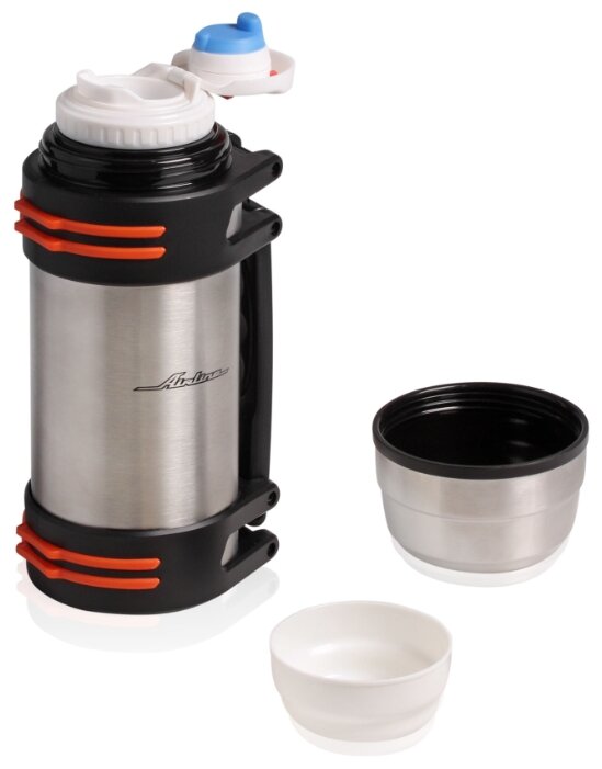 | Дополнительная информация : | двойные стенки, герметичная пластиковая крышка с системой быстрого открывания, две кружки, складная ручка |