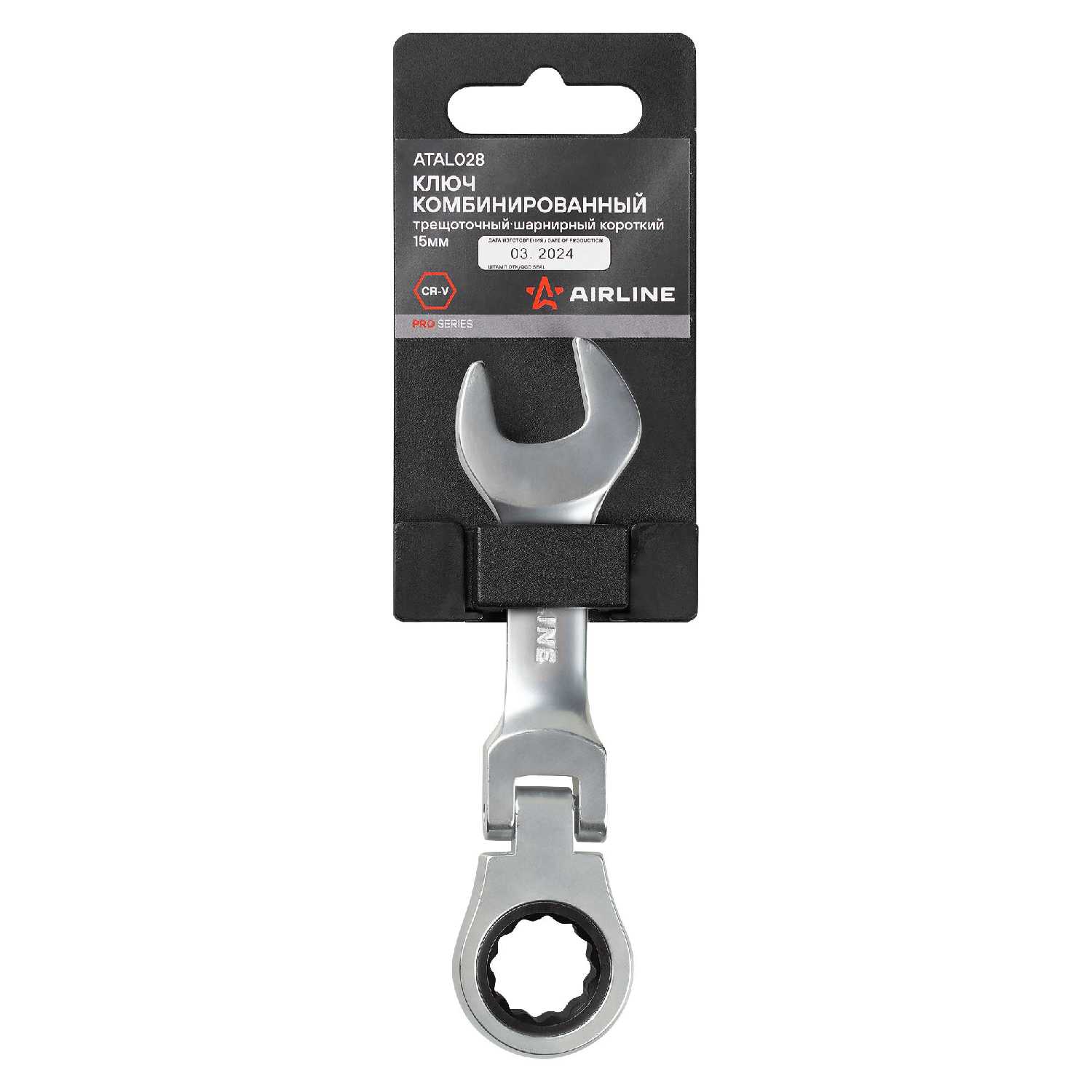 Характеристи Airline Ключ комбинированный трещоточный шарнирный короткий 15мм (ATAL028)