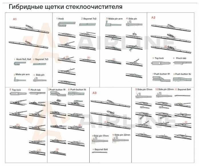 Характеристи Airline Щетка стеклоочистителя 475 мм (19") гибридная, 3 адаптера (AWB-H-475)