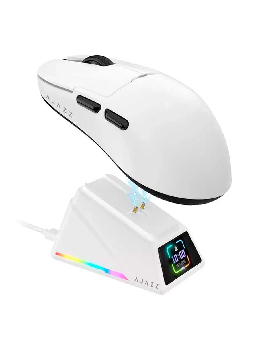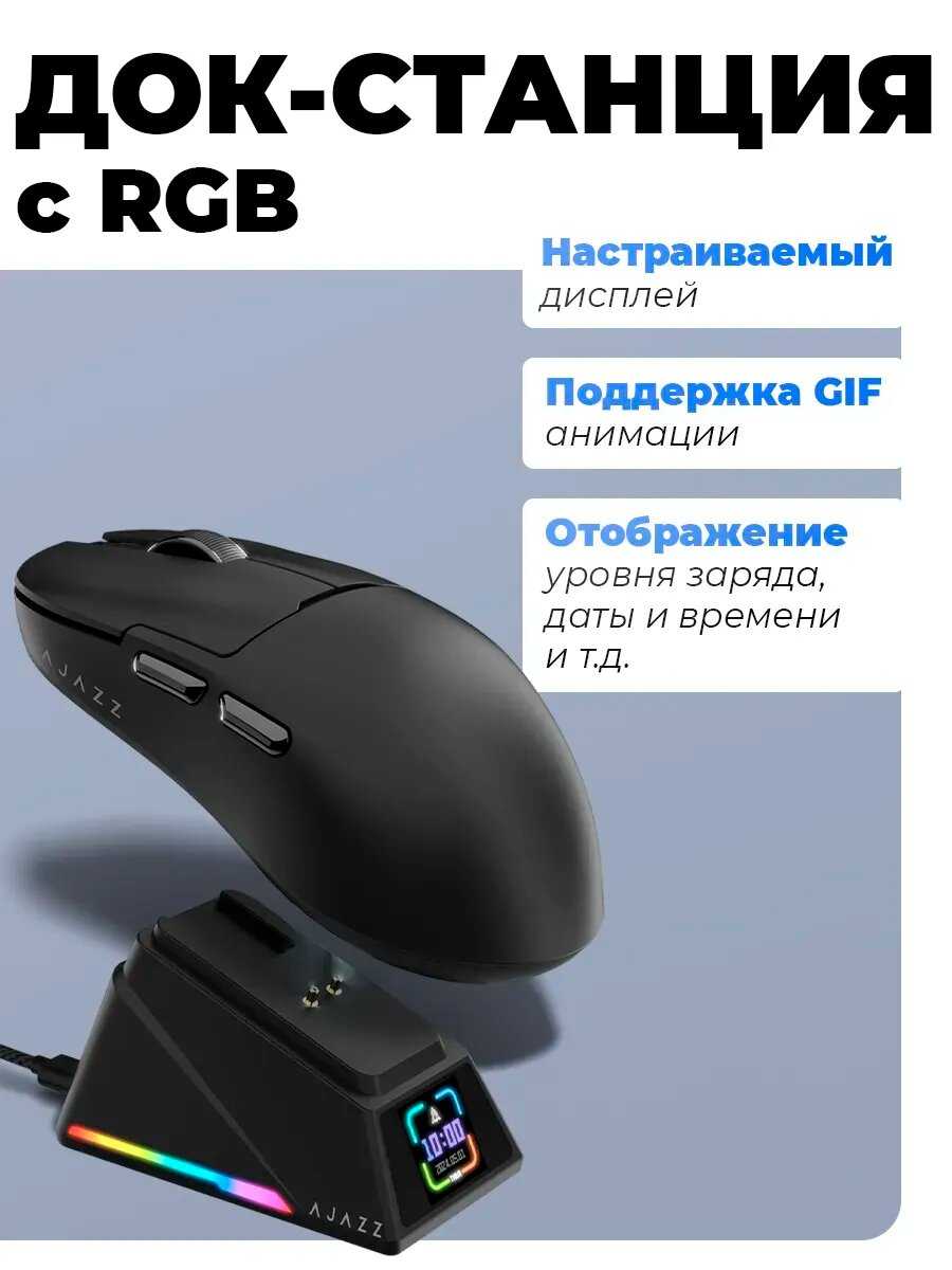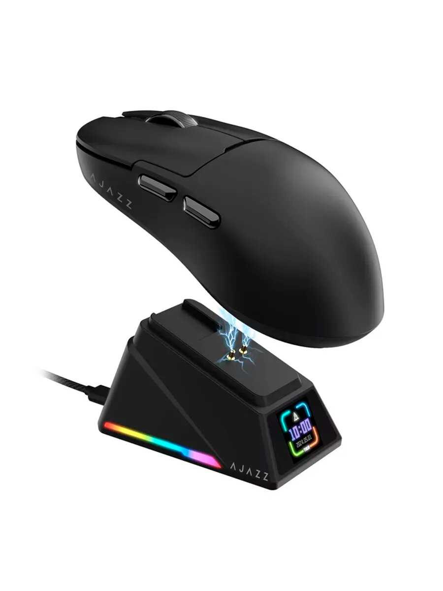 Док-станция с дисплеем – инновационная, но проблемная фишка модели. Помимо зарядки, она отображает DPI, частоту опроса, дату и время, однако синхронизация последних возможна только через ПО AJAZZ и сбрасывается при отключении. У 15-20% владельцев станция вышла из строя через 1-6 месяцев: экран гаснет, зарядка прекращается, связь с мышью обрывается. Даже исправные экземпляры имеют "спящий" режим дисплея, активирующийся только при движении мыши. Глубокая посадка USB-C разъёма на самой станции ограничивает совместимость с кабелями. Критичен программный баг: станция не отключается при выключении ПК, продолжая разряжать мышь.