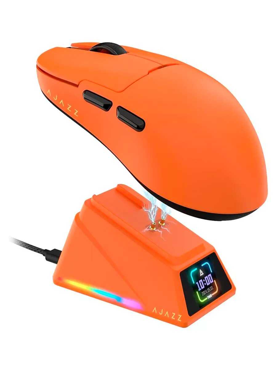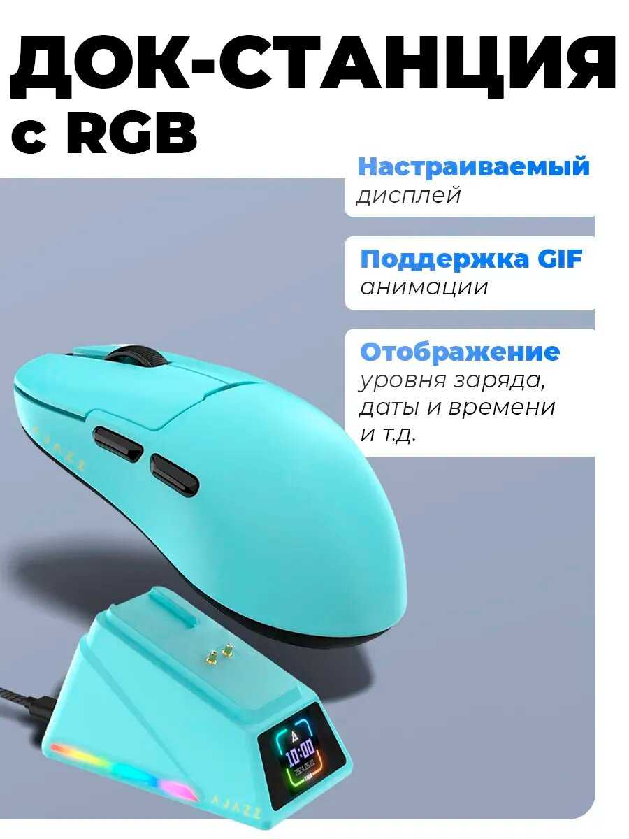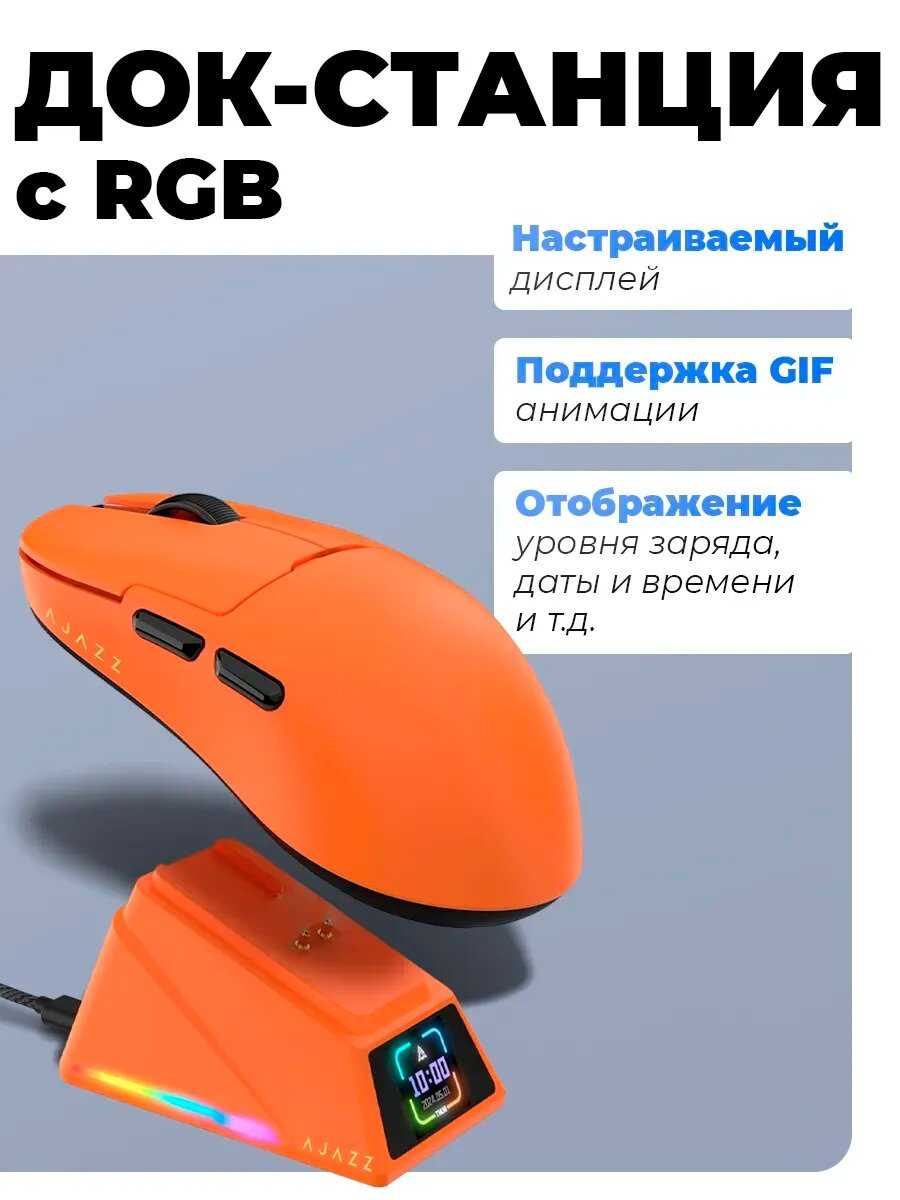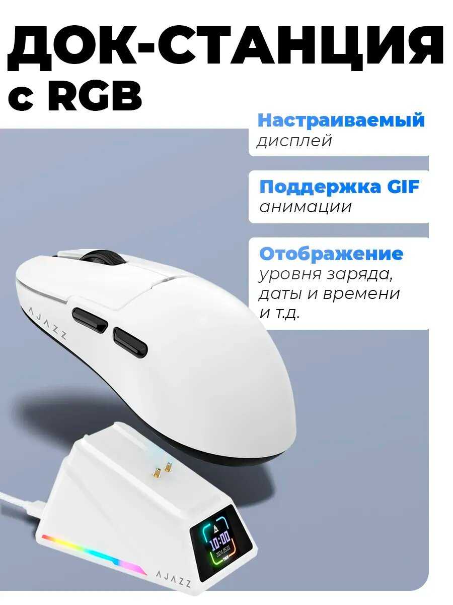 Док-станция с дисплеем – инновационная, но проблемная фишка модели. Помимо зарядки, она отображает DPI, частоту опроса, дату и время, однако синхронизация последних возможна только через ПО AJAZZ и сбрасывается при отключении. У 15-20% владельцев станция вышла из строя через 1-6 месяцев: экран гаснет, зарядка прекращается, связь с мышью обрывается. Даже исправные экземпляры имеют "спящий" режим дисплея, активирующийся только при движении мыши. Глубокая посадка USB-C разъёма на самой станции ограничивает совместимость с кабелями. Критичен программный баг: станция не отключается при выключении ПК, продолжая разряжать мышь.