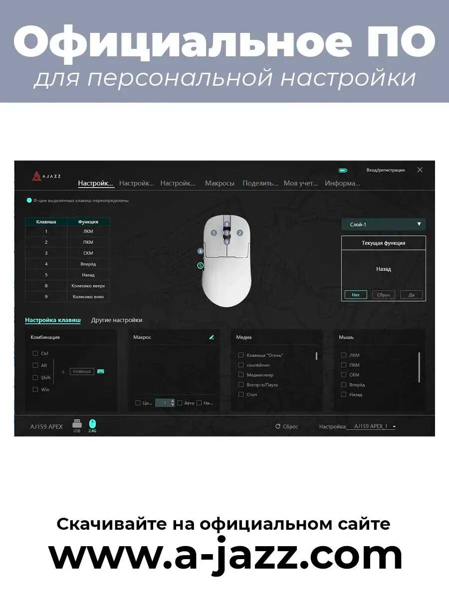 - Гибкая настройка параметров через фирменное ПО Ajazz: