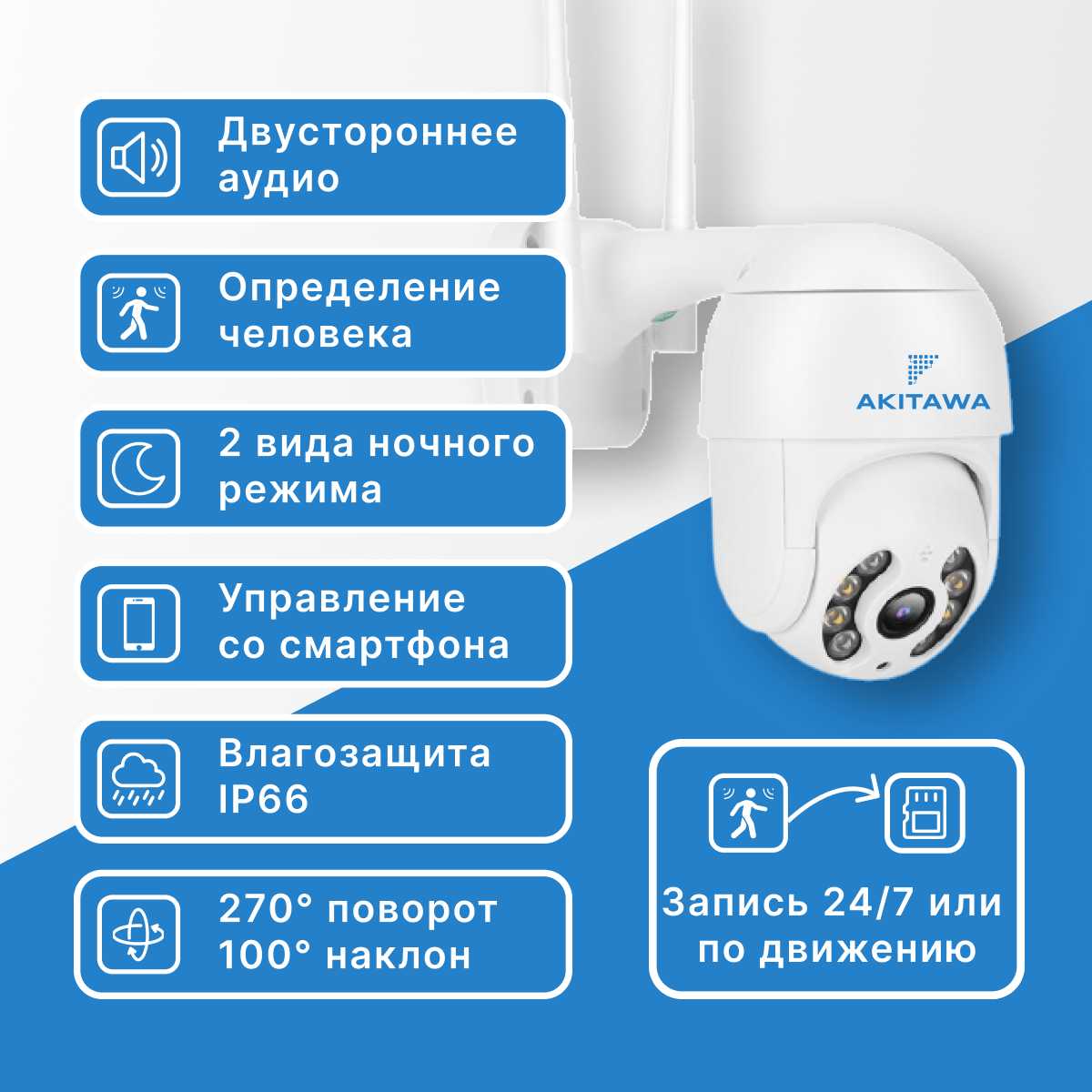 Отзывы о Камера видеонаблюдения Wifi Akitawa (1080p, 4x зум, поворотная)