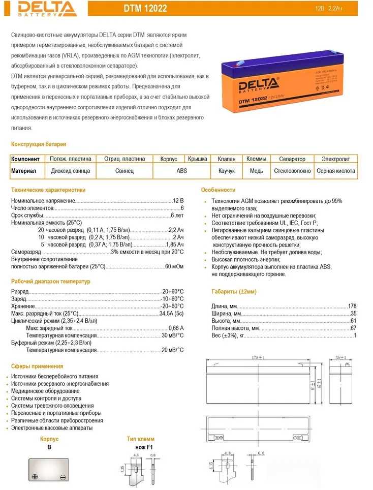 Характеристики:- модель/исполнение: свинец AGM+GEL