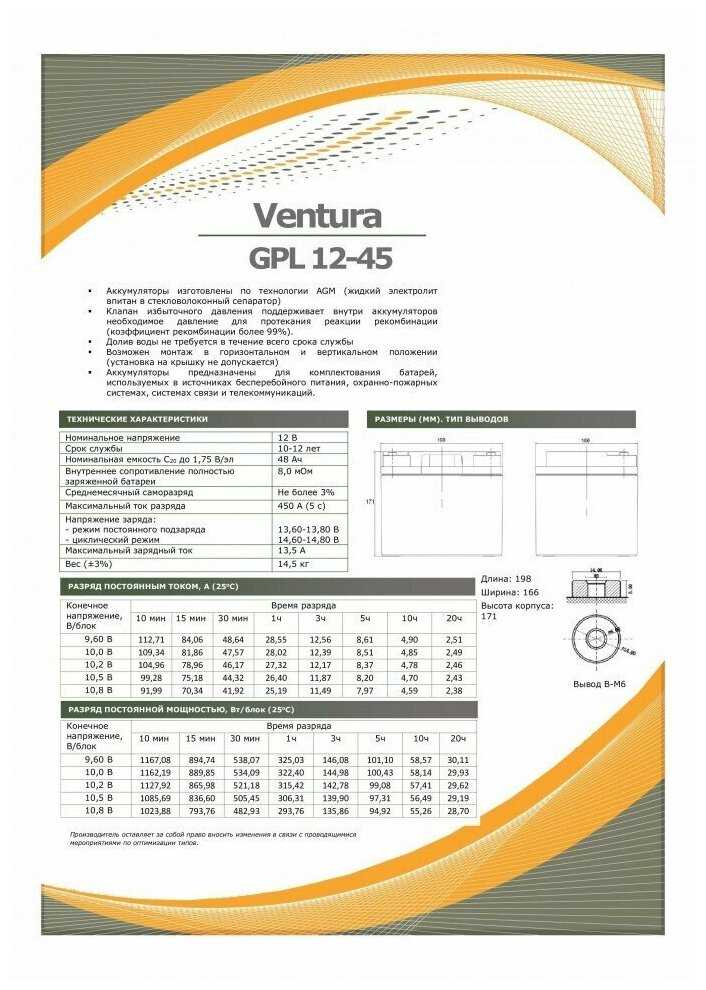 Характеристики:- Модель/исполнение: свинец AGM+GEL