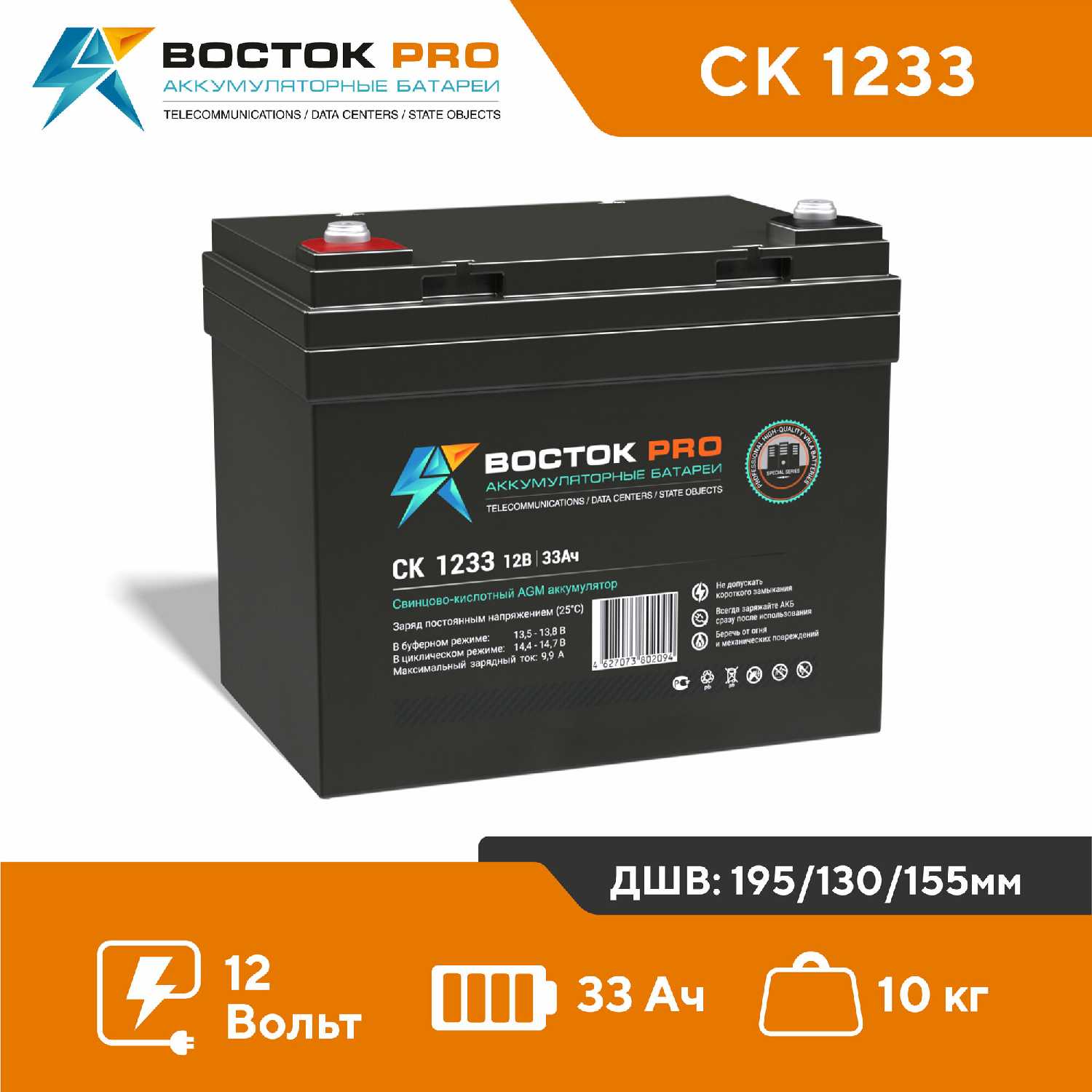 ВОСТОК Аккумулятор восток CK-12200 (12В, 200Ач / 12V, 200Ah (UPS серия)