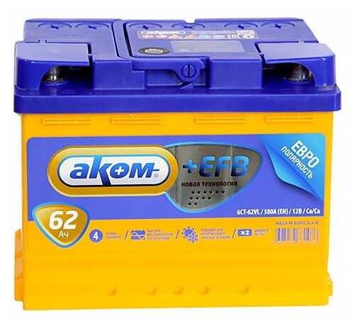 Отзывы о Автомобильный аккумулятор Аком + EFB 62E (580 А) 242х175х190