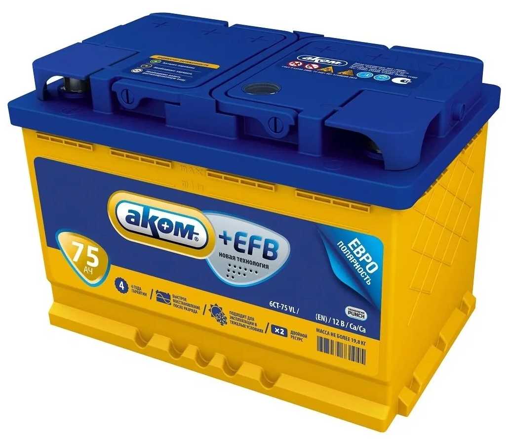 Отзывы о Аккумулятор для спецтехники Аком + EFB 75Е (750 A) 277х175х190