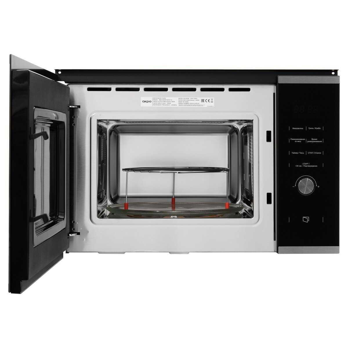 900Вт, нет торчащих ручек (легче поддерживать чистоту), тихая (потому что встроенная). В остальном, микроволновка- как микроволновка.