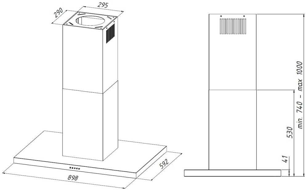 Во-первых, это не каминная вытяжка, а островная, т.е. крепится не к стене, а к потолку.