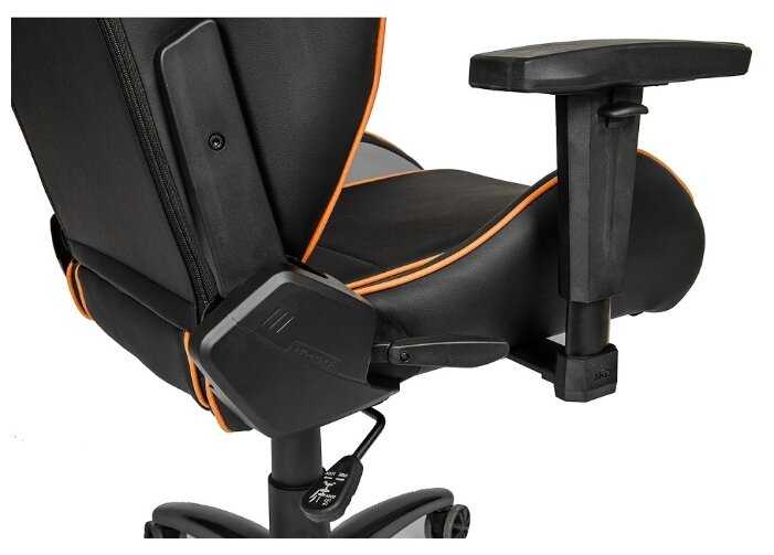 Небольшой люфт подлокотников. Подлокотники 1D, то есть только регулировка по вертикали. За такую цену можно было и 3d сделать. При нажатии на рычаг откидывания спинки, для того чтобы сложить кресло из разложенного состояния, если не придержать ее может ударить сидящим об стол.