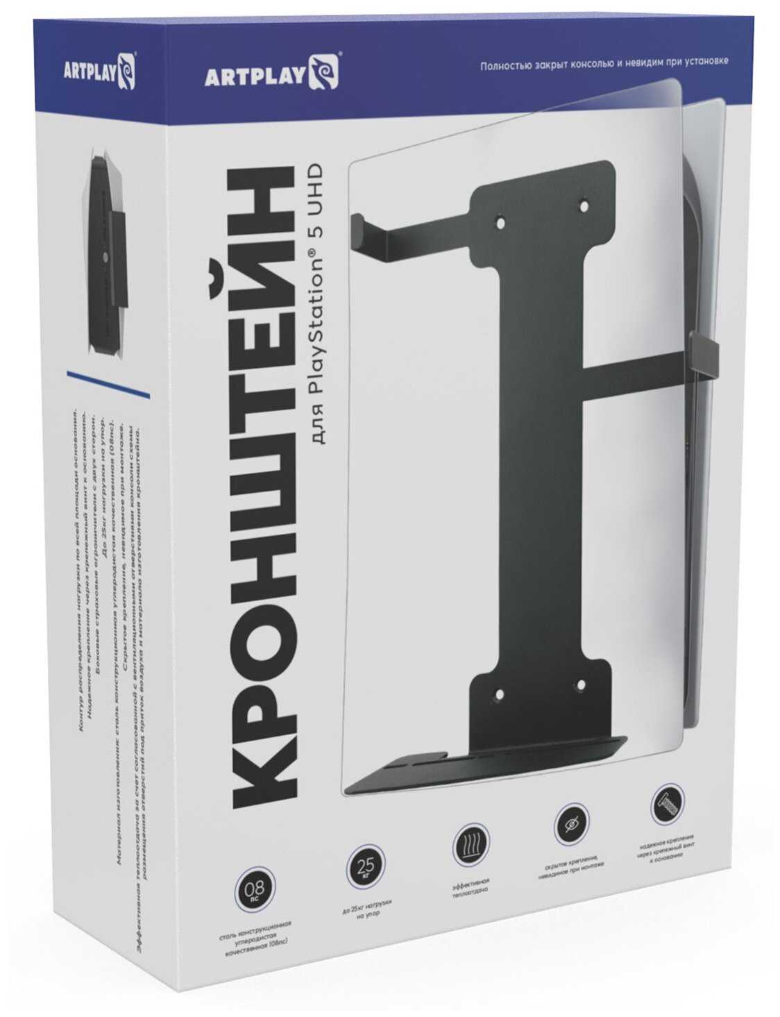 - Купил для PS 5 Digital Edition, вешал так что бы ребенок не смог свалить с тумбы, сам кронштейн не заметен на стенке смотрится гармонично