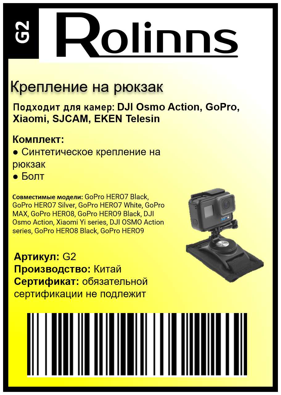 Характеристики:- совместимые бренды экшн-камер: GoPro