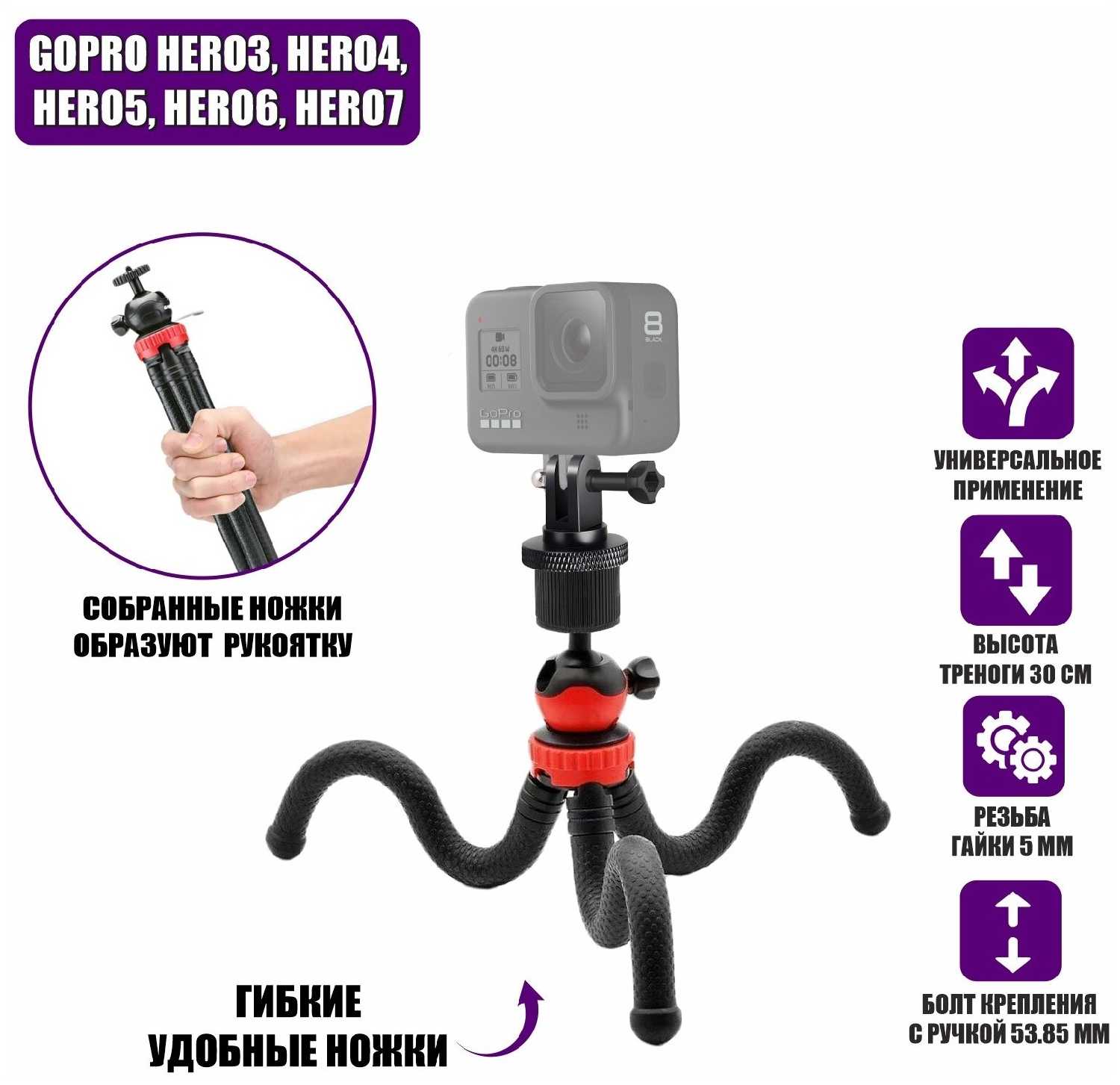 Характеристики:- совместимые бренды: GoPro
