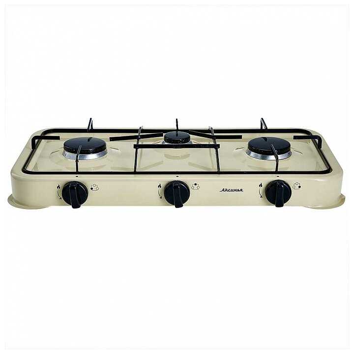 Модель оснащена тремя конфорками, что отмечается пользователями как оптимальное решение для экономии газа и места. Расположение конфорок позволяет одновременно разместить большую кастрюлю и сковороду. Ширина в 60 см обеспечивает достаточное пространство для крупной посуды. -