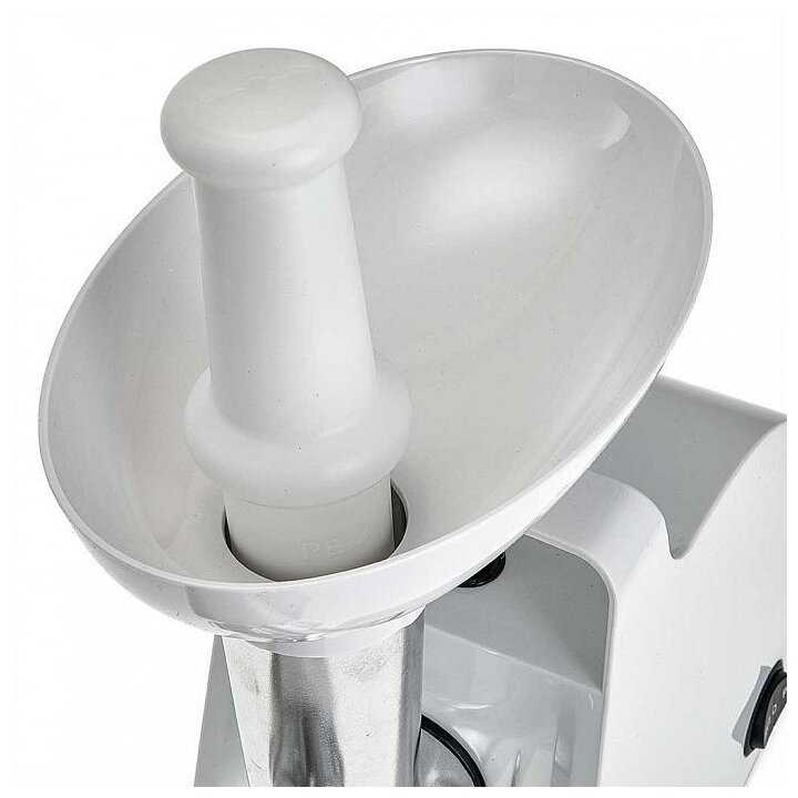 Крутая мясорубка, купила ее в подарок своей маме, она давно хотела новую. Мясорубка работает очень тихо, почти не слышно не. Также она имеет три насадки - терка, овощерезка и шинковка. Также имеется автоматическое отключение если она перегрелась. Вместе с мясорубкой в комплекте идёт толкатель мяса. Мама очень довольна и я всем рекомендую к покупке.