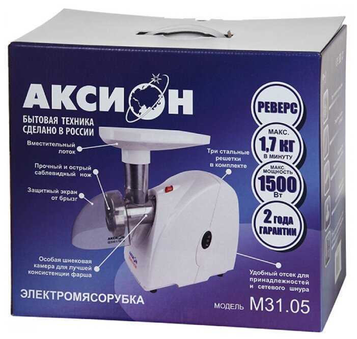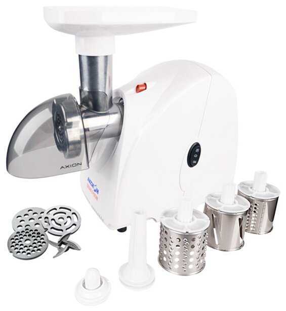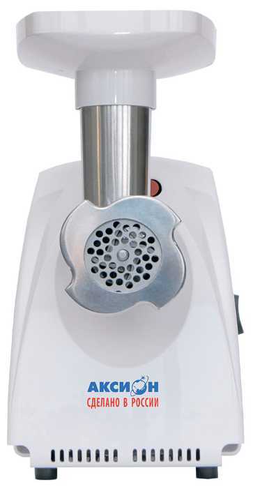 Это моя первая электромясорубка, про фирму Аксион, как надежного производителя мясорубок, слышал давно. Модель новая и очень удачная, в ней собран практичный функционал, все детали крепятся на корпусе или убраны в корпус, никаких лишних насадок, т.е. данная комплектация по приемлемой цене без переплат.