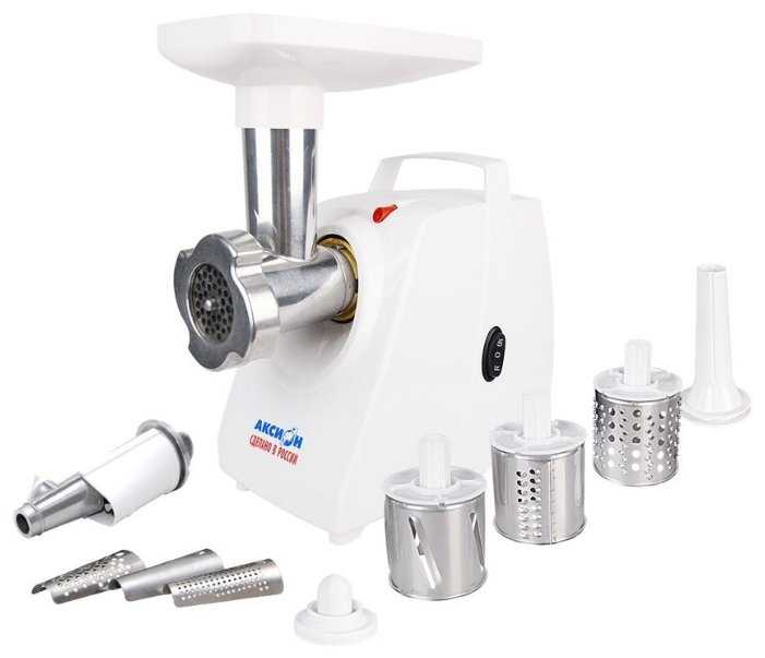 Брал с год назад. В приоритете были как обычно: бренды. Из схожих по цене и более дорогих все бренды оказались пластиковыми внутри - как втирают производители: для защиты мотора от сгорания предусмотрены пластиковые шестерни/втулки, которые срезает при критической нагрузке и сохраняет мотор. Был опыт владения Кенвудом (на момент покупки просто топ, флагман полупрофессионалок), по итогу на втором использовании срезало шестерню в редукторе ценой в 1/5 от цены мясорубки….. зато мотор не сгорел. И так взят недорогой Аксион и пользован в течении года в семейном кухонном обиходе: овощи, мясо, рыба (с костями), печеньки и т.д. Всё это мясорубка перемалывает без запинки. Разбирать, мыть, собирать после использования легко. За всё время один раз срезало предохранительную втулку- жена перегрузила, так ей цена копейки и в комплекте их три запасных есть.
