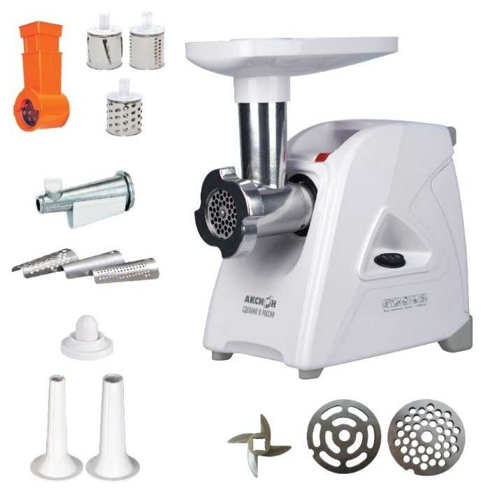 - 3 решетки для фарша (мелкая, средняя, крупная), насадки для колбас, кеббе, шинковки овощей.