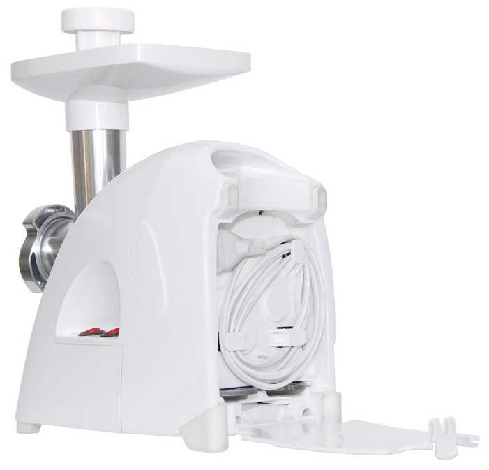 - Встроенный отсек для хранения шнура и насадок (сеток, толкателя, терки).
