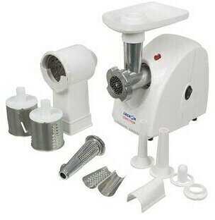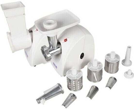 Отличная и качественная комплектация , несколько видов терки ,соковыжималка ,насадки для приготовления колбас и кеббе. Единственное что не хватило, это экрана от брызг , придется покупать отдельно.