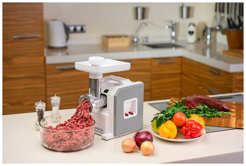 Удобство использования и эргономика:Модель продумана для компактного хранения: провод, насадки и поддон размещаются внутри корпуса, что сокращает занимаемое место вдвое. Высокий выход фарша позволяет использовать крупную посуду, а ручка на корпусе упрощает переноску. Кнопки управления скрыты в нишах, что защищает их от загрязнений, но требует привыкания. Защитный экран от брызг, присутствующий в некоторых комплектациях, стал неожиданным преимуществом — аналоги редко предлагают такую опцию. Однако часть пользователей столкнулась с недокомплектом: отсутствие мелкой решетки (3 мм), шинковки или насадки для колбас критикуется как недоработка продавцов, а не производителя.