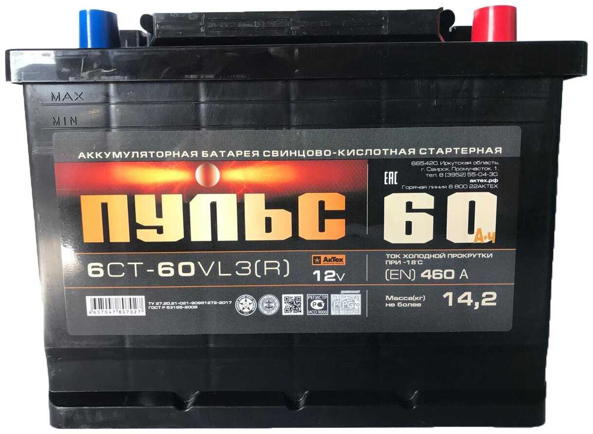 Характеристи АкТех Автомобильный аккумулятор АkТex Пульс, EN460, ОП, 60 а/ч