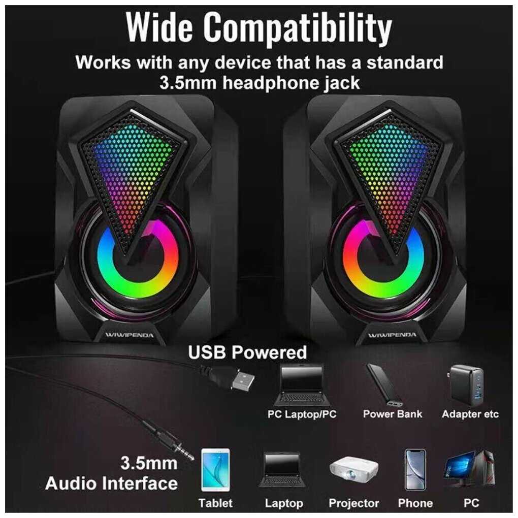 Grand Price с RGB-подсветкой, USB-зарядка, 3,5-мм разъем - комплект 2 динамика, черный