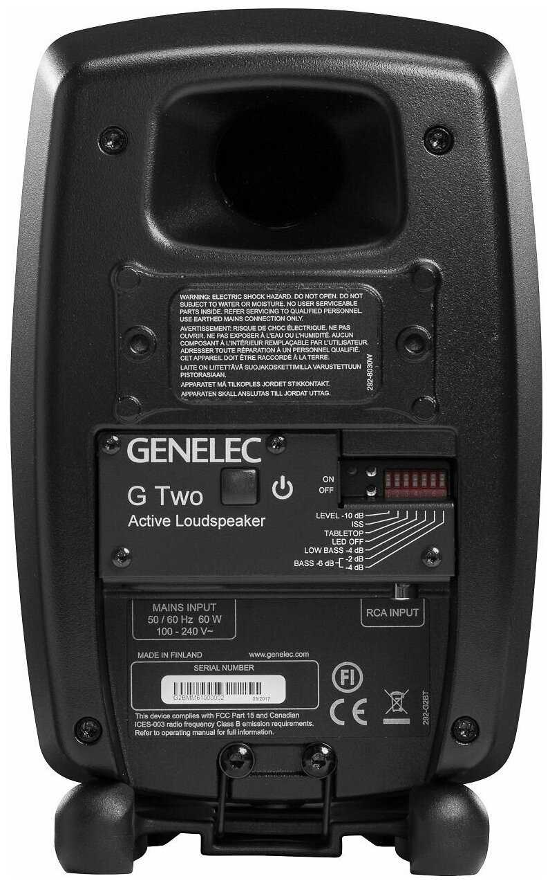 Genelec G Two BMM активная 2-полосная АС. НЧ 4" 50Вт, ВЧ 0.75" 50Вт. Подставки. Вход: аналог. RCA. Макс. SPL 100 дБ, 56Гц-25кГц (-6 дБ). Кроссовер 300