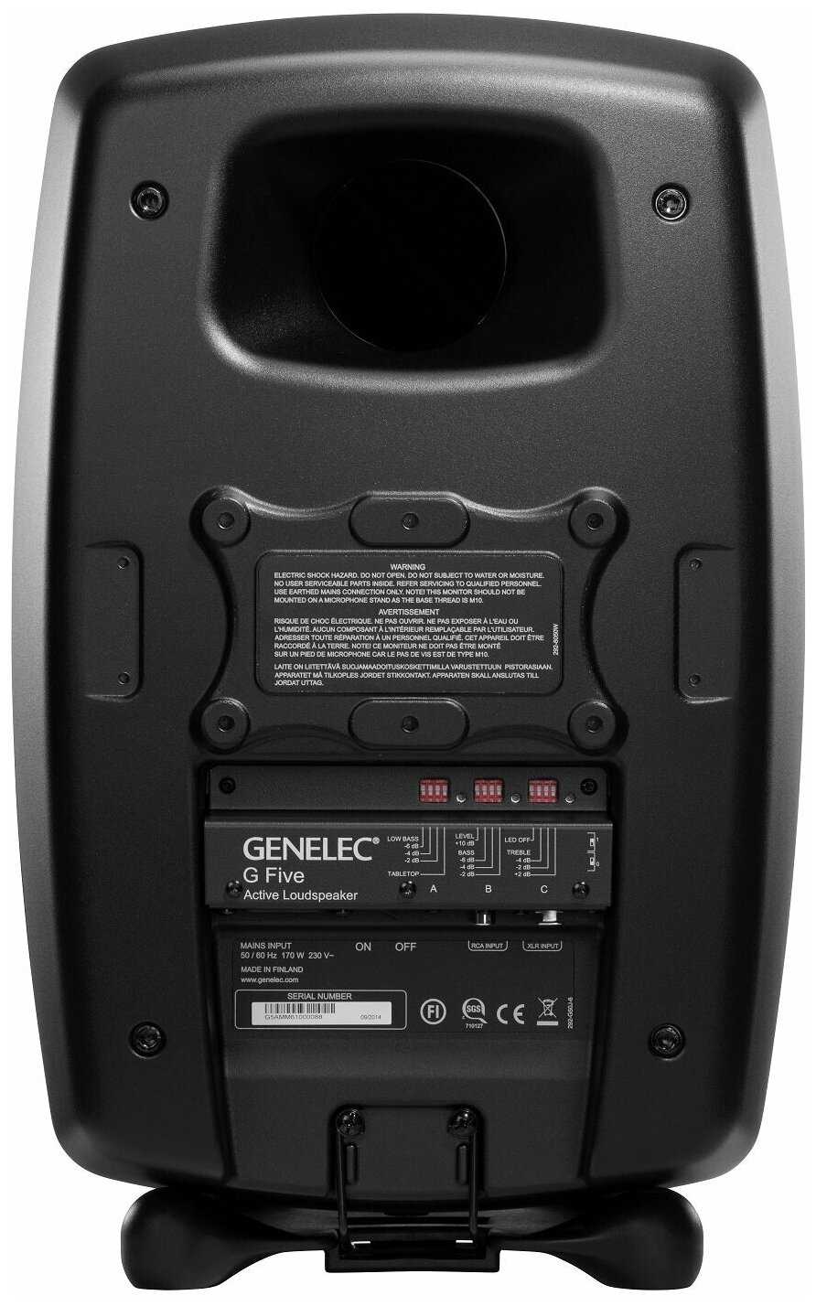 Genelec G Five AMM активная 2-полосная АС, НЧ 8" 150Вт, ВЧ 1" 120Вт. Подставки. Входы: аналог. RCA, XLR. Макс. SPL 110 дБ, 32Гц-25кГц (-6 дБ). Кроссов