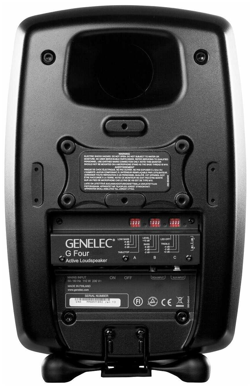 Genelec G Four AWM активная 2-полосная АС, НЧ 6.5" 90Вт, ВЧ 0.75" 90Вт. Подставки. Входы: аналог. RCA, XLR. Макс. SPL 105 дБ, 41Гц-25кГц (-6 дБ). Крос