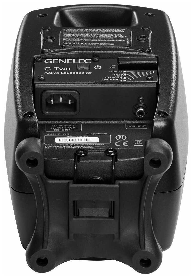 Genelec G Two BMM активная 2-полосная АС. НЧ 4" 50Вт, ВЧ 0.75" 50Вт. Подставки. Вход: аналог. RCA. Макс. SPL 100 дБ, 56Гц-25кГц (-6 дБ). Кроссовер 300