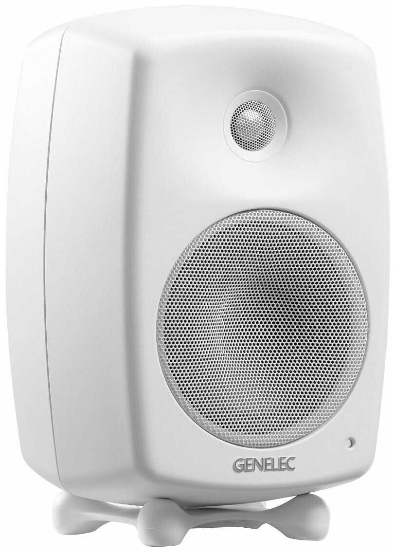 Genelec G Three BW активная 2-полосная АС. НЧ 5" 50Вт, ВЧ 0.75" 50Вт. Подставки. Входы: аналог. RCA, XLR. Макс. SPL 104 дБ, 47Гц-25кГц (-6 дБ). Кроссо