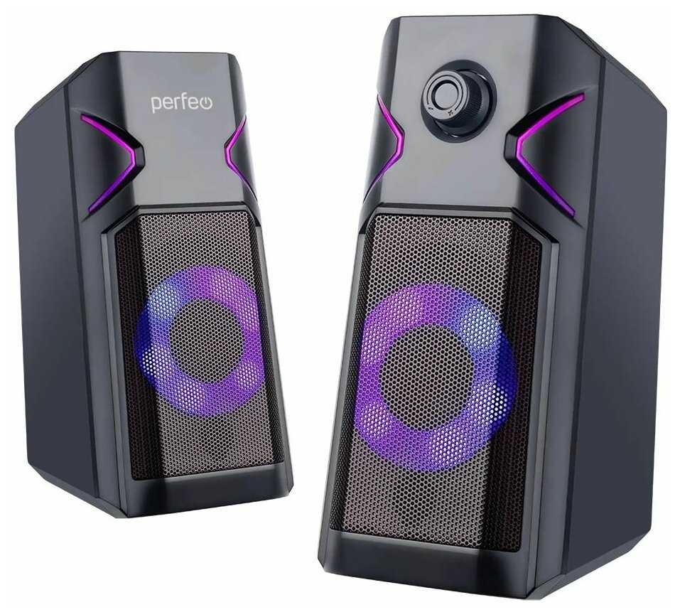 Perfeo DISCO", 2.0, мощность 2х3 Вт, USB, чёрн, Game Design, RGB подсветка 7 режимов