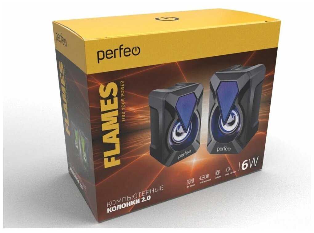 Perfeo FLAMES", 2.0, мощность 2х3 Вт, USB, чёрн, Game Design, LED подсветка 7 цв