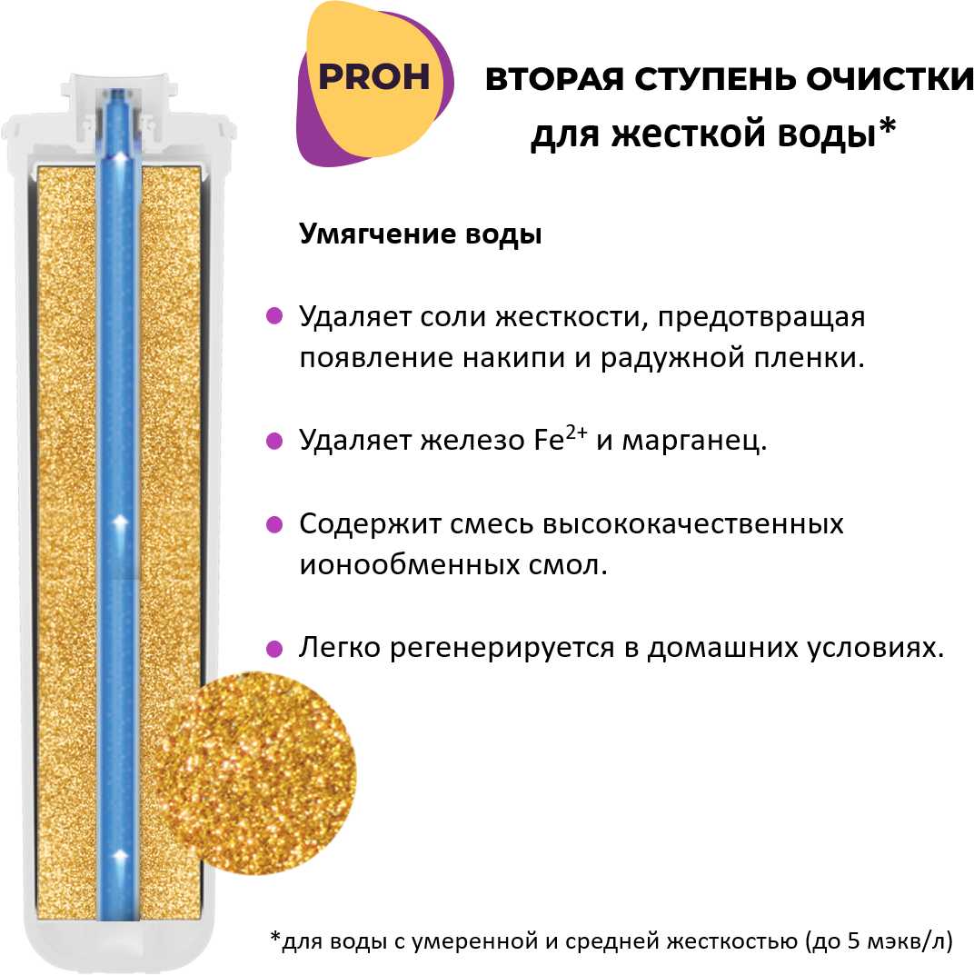 - Умягчающий модуль H снижает жёсткость до уровня, где накипь не образуется даже после месяца использования, продлевая срок службы бытовой техники.