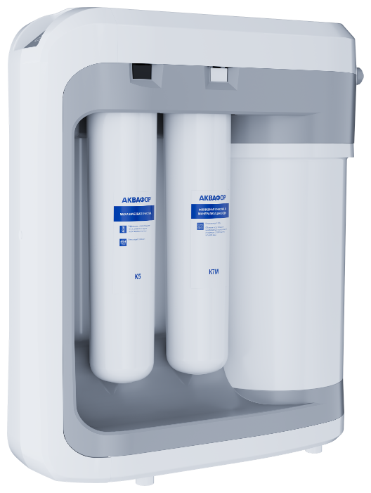 Осмос со встроенным насосом. У нас часто бывает слабый напор в трубе, большинство осмосов при таком условии не работает. А этот справляется, я доволен. Жесткую воду делает мягче и вкуснее (за счет минерализирующей колбы).