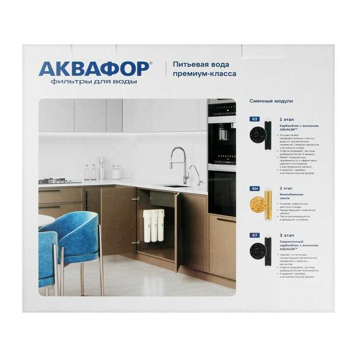 - Компактные размеры модулей (три картриджа в ряд) минимизируют占用 пространства в ограниченном объеме под раковиной, улучшая эргономику кухонного пространства.