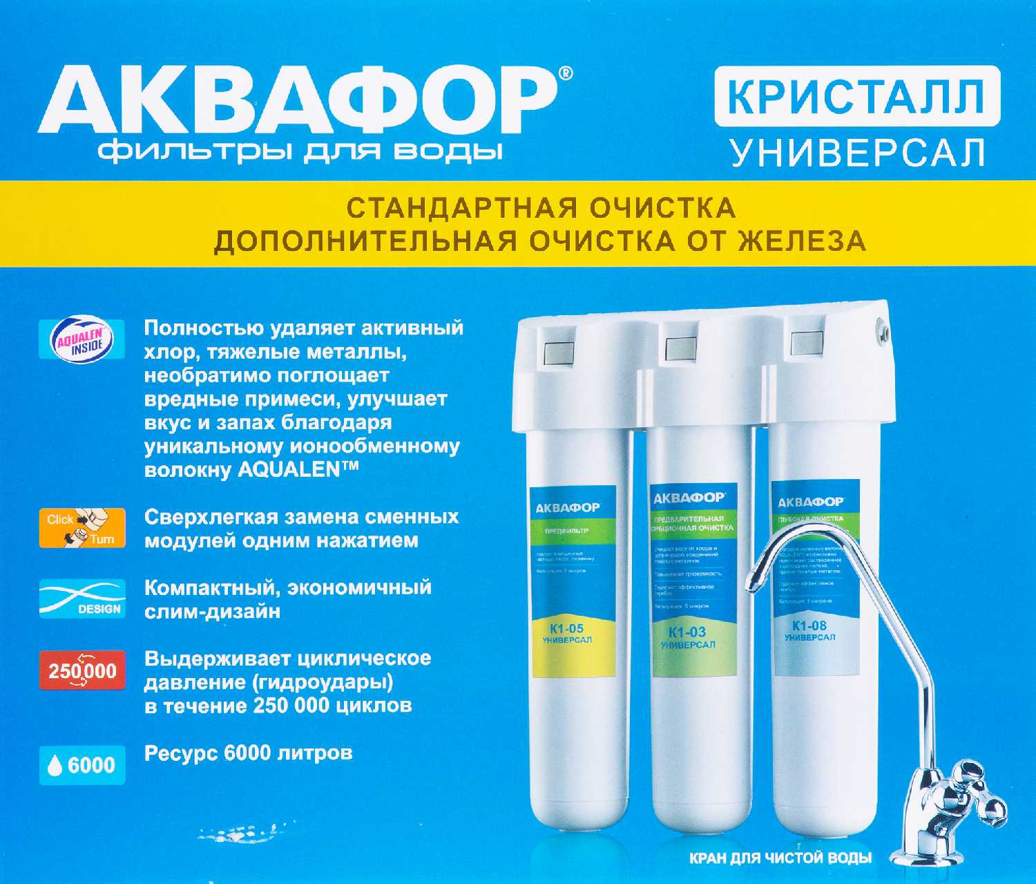 | Дополнительная информация : | Система трёхступенчатая Аквафор Кристалл Универсал для жёсткой воды |