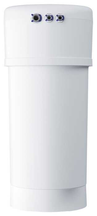 - + 1) Главное достоинство - оптимальный баланс между компактностью и стоимость. Система (фильтрующие колбы и накопительный бак) сблочена на общей подставке, ничего не надо прикручивать и крепить - поставил под мойку и забыл!