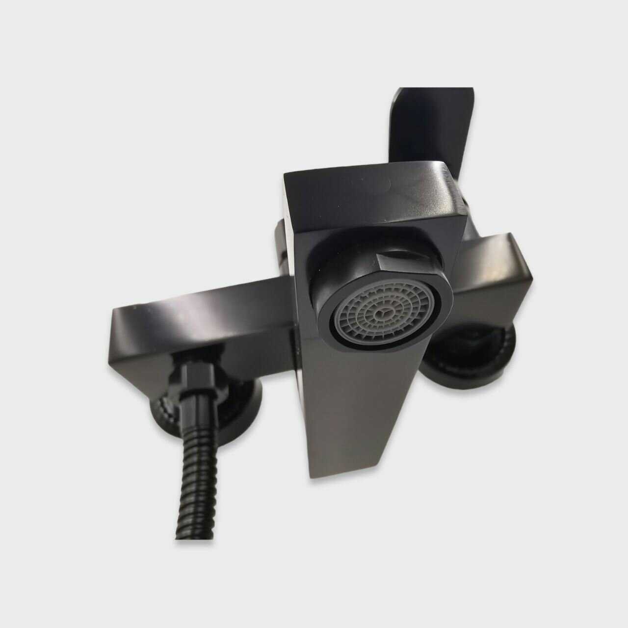 Комплектация : | держатель лейки, излив для набора воды, кронштейн, лейка, ручной душ, смеситель, шланг |