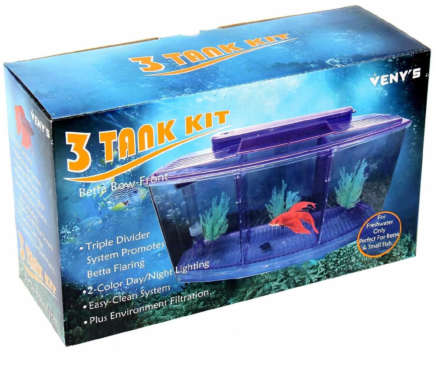 Veny's Аквариум-отсадник трехсекционный с подсветкой и светящимися растениями, фиолетовый