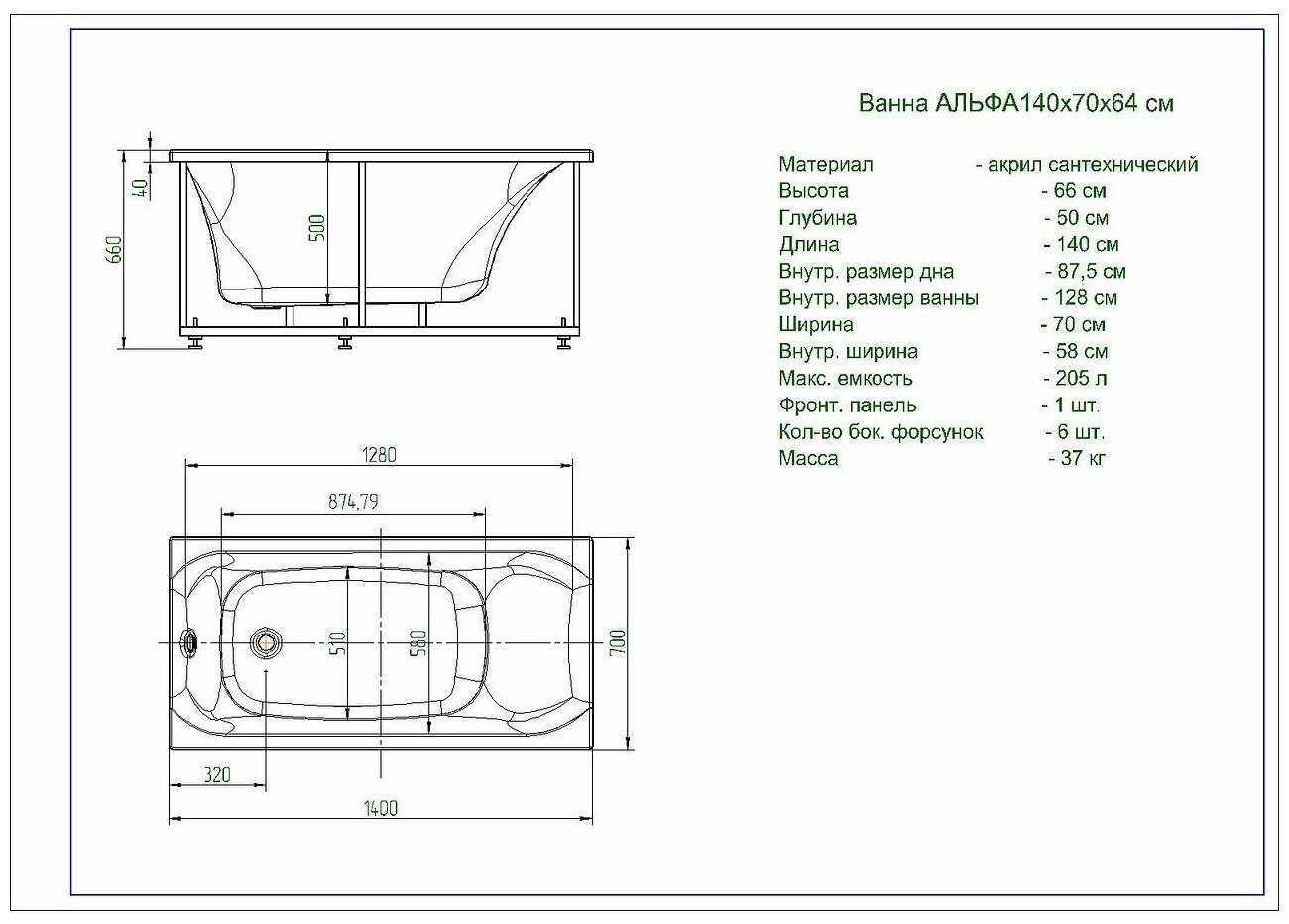 Характеристи АКВАТЕК Ванна Aquatek Альфа 140x70 ALF140-0000019 акрил