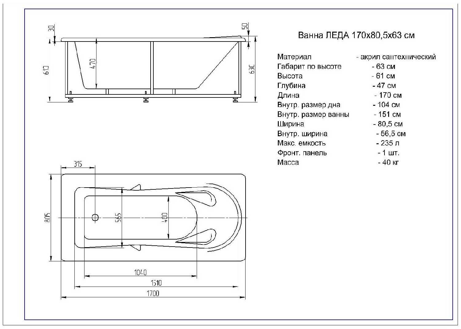 Обзоры и руководства на АКВАТЕК Ванна Aquatek Леда 170х80 LED170-0000034 акрил